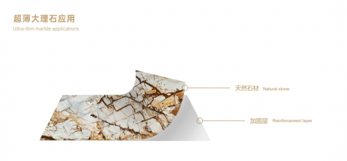 随着疫情的倒逼和新型材料的不断涌现,“绿色”“科技”成为人们消费时更重视的条件,也是未来的趋势。五克拉超薄石材董事长许长城说道:石材家具作为一种新兴的家具装饰材料,因其高贵奢华的自然纹理,为家装增添美观度和厚重感,越来越受广大用户喜欢,但却因重量大、弹性差,让人爱而远之。五克拉超薄石材饰面,打破传统,采用先进技术,将几吨重的天然石材打磨成0.5-5mm的饰面,完整保存天然石材纹理的同时,更让石材变得更轻薄、柔韧,令人爱不释手。相信接下去,科技石材与前沿设计的落地应用,将在未来市场大有所为。