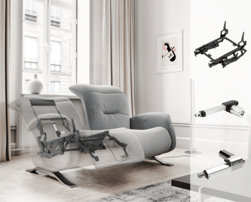 德国OKIN功能铁架将铁架与电气系统一体化,首创的“机电一体化沙发铁架”大大减少了材料成本与制作流程,再凭借高度标准化的生产工艺实现降本增效,为成品沙发厂家创造了更广阔的利润空间。